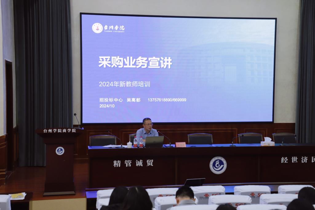 10月23日下午,招投标中心主任吴高都受邀为2024年新入职教师做采购业务专题培训,百余名新教师参加了此次培训。