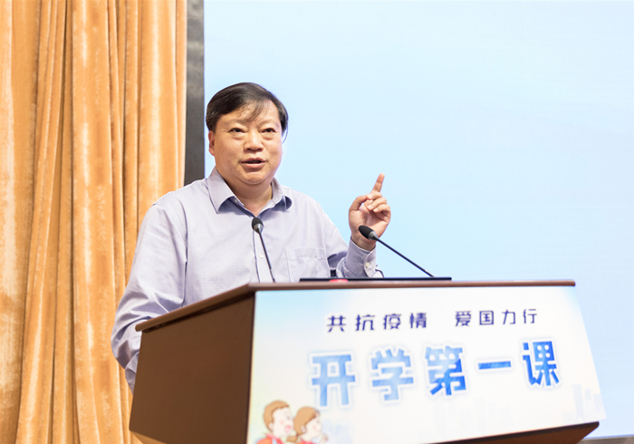 校党委副书记金先龙以“疫情下的思考”为题,从政府的高效管制、全民的主动配合、医疗系统的无畏支持、信息能力的有力呈现等方面,与全校师生共同探讨中国为什么能取得疫情防控的阶段性胜利,勉励大家要从这场没有硝烟的战争中读懂中国力量、中国精神和中国效率,做一个学会珍惜、懂得感恩、自律担当的新时代大学生,用自己的青春担当点亮祖国的未来。