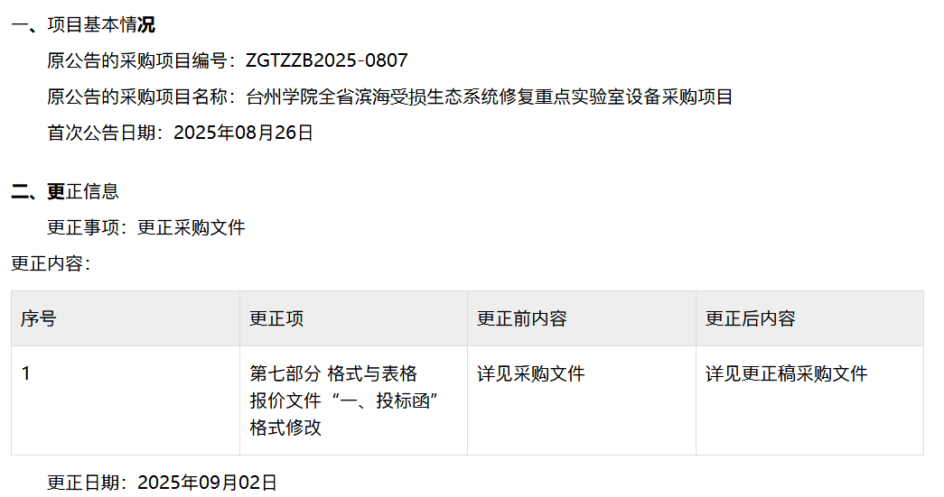 更正稿ZGTZZB2025-0807台州学院全省滨海受损生态系统修复重点实验室设备采购项目9.2.docx