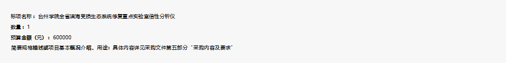 项目名称 :台州学院全省滨海受损生态系统修复重点实验室倍性分析仪采购项目